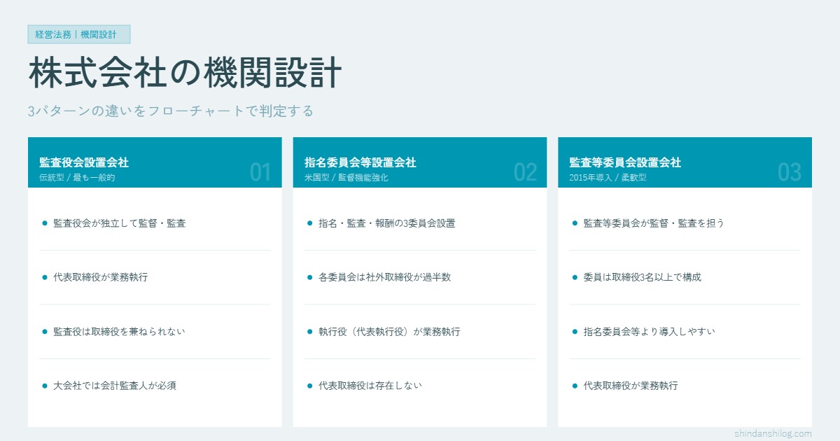 株式会社の機関設計を図解で整理|取締役・監査役・委員会の選択パターンと試験ポイント